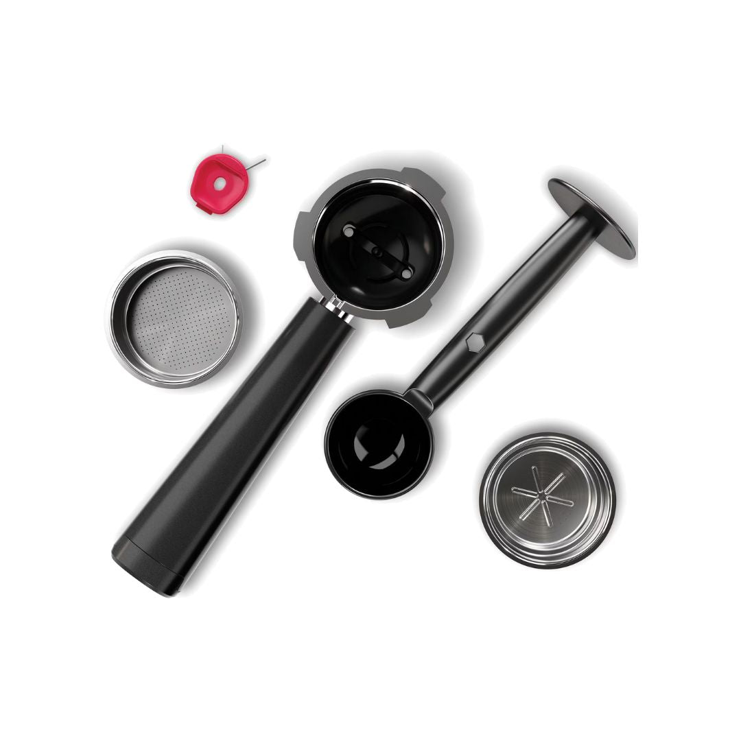 Items included : Filter holder, Tamper/measure spoon, One-cup/ ESE pod filter cup, Two-cup filter cup, Cleansing pin