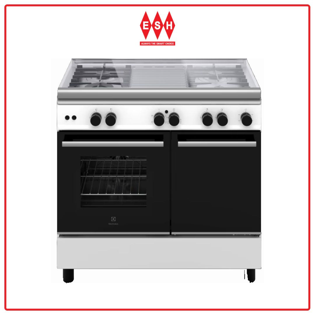 ELECTROLUX ECG942W 90CM 500 SERIES FREESTANDING COOKER WITH GAS HOB AND 62L ELECTRIC OVEN | ESH