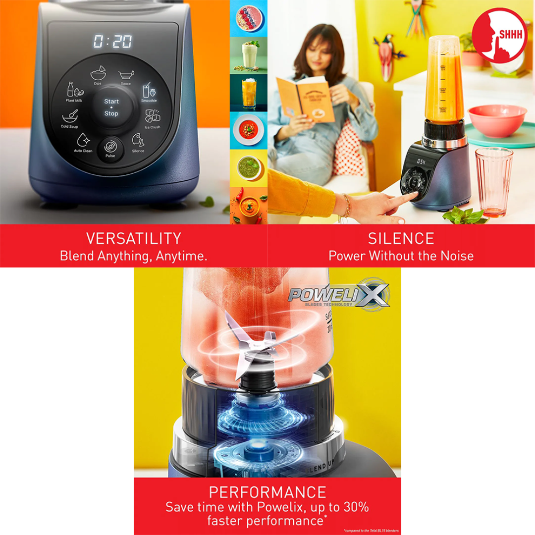 •Power Without the Noise: Blend discreetly at any hour with a dedicated silence mode designed to minimize noise, up to 2x quieter.