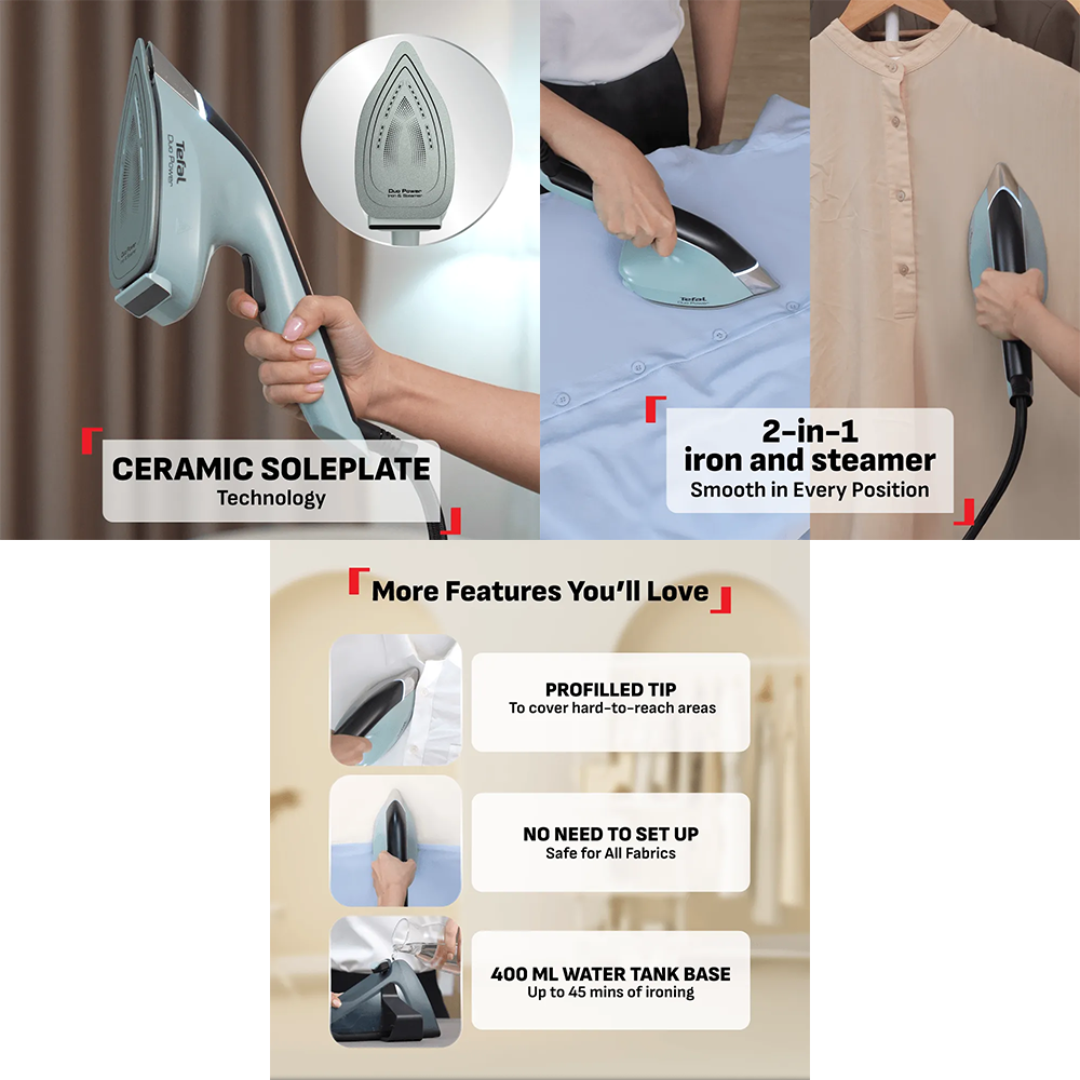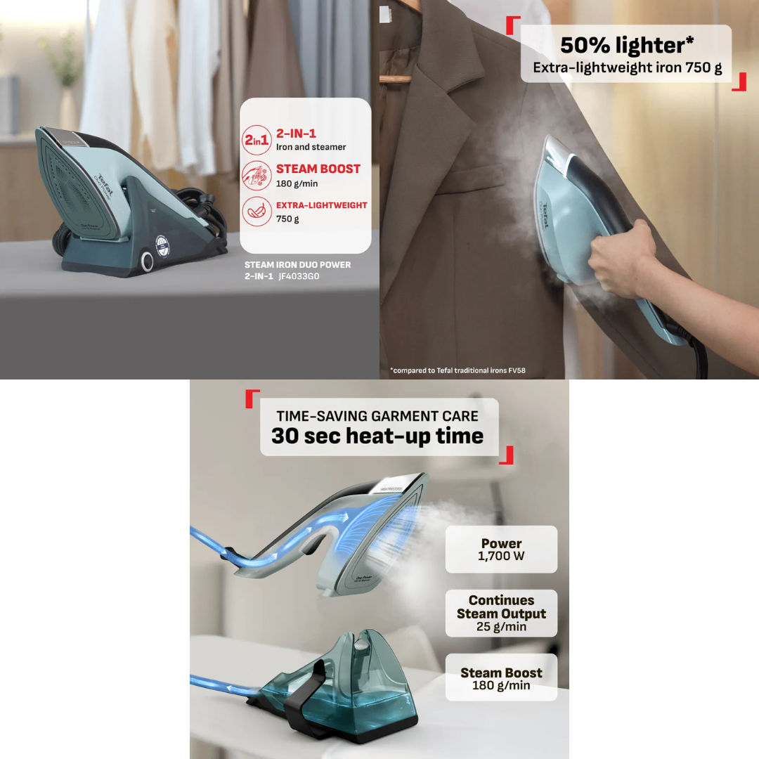 TEFAL JF4033 1700W DUO POWER 2-IN-1 STEAM IRON & CLOTHES STEAMER | ESH