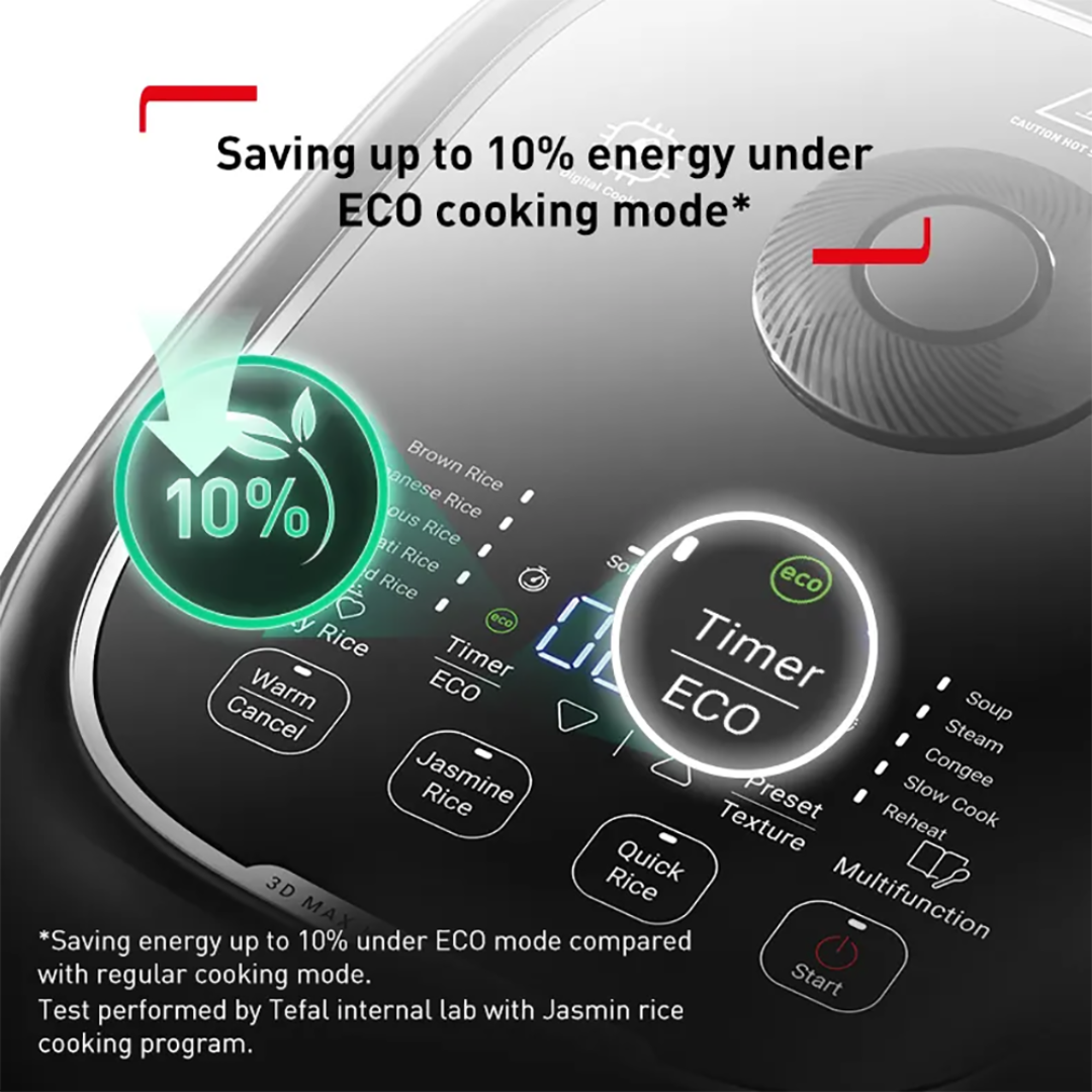 •Up to 10% energy savings* with the ECO Mode, which reduces water volume and cooking time