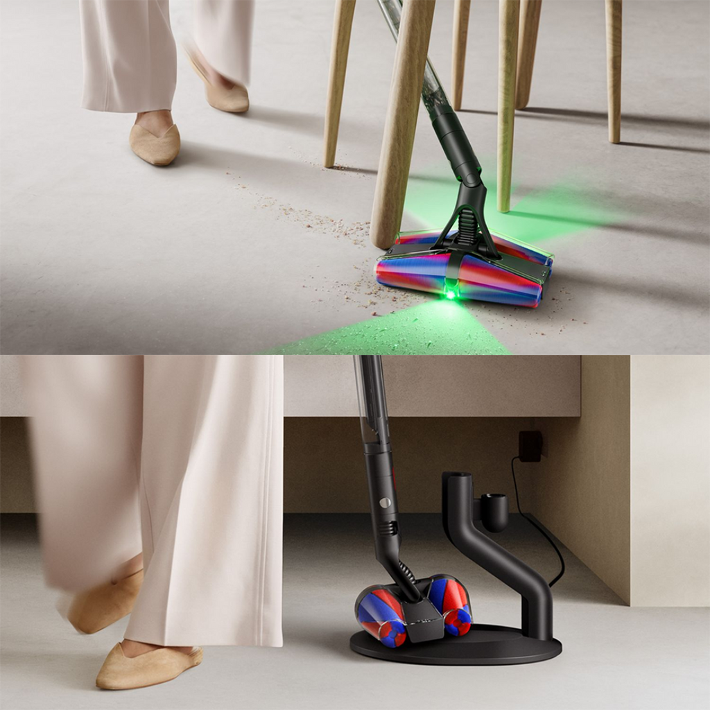•The first vacuum with four soft conical brush bars. Fluffycones™ de-tangle long hair.