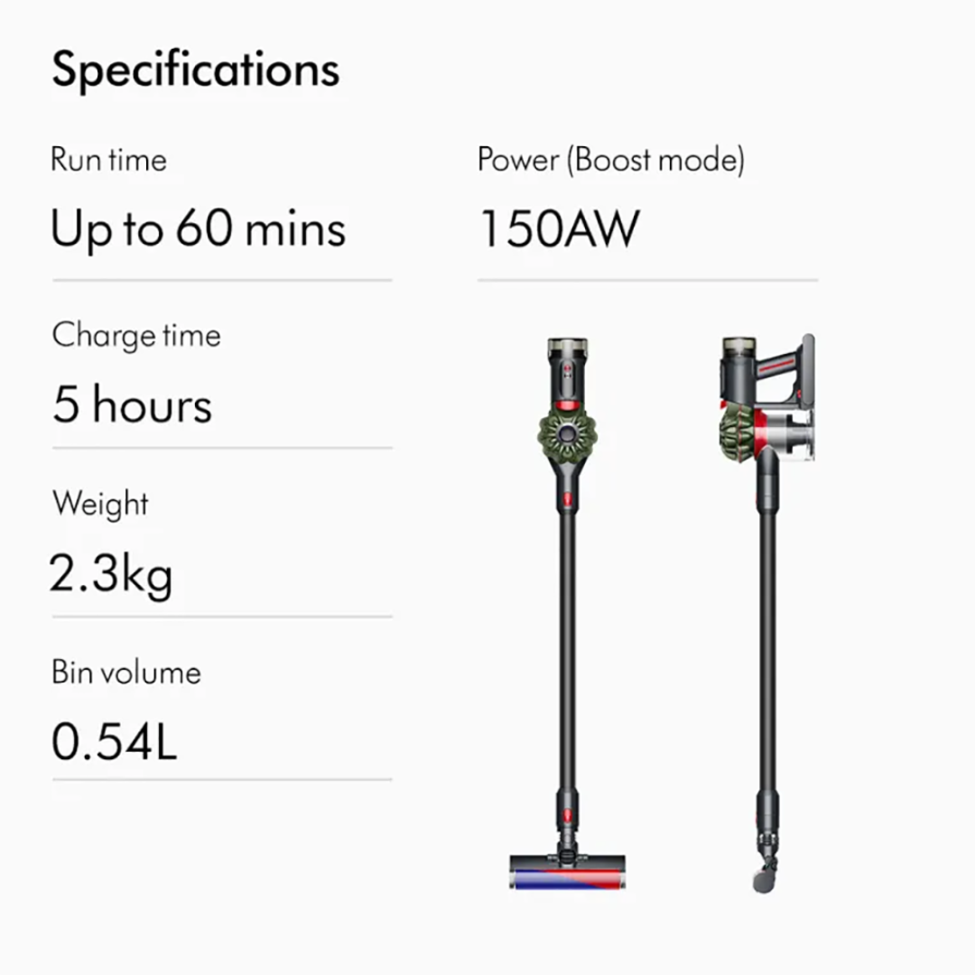 Dyson’s 15 cyclones capture and separate dust and debris, so there’s no loss of suction.