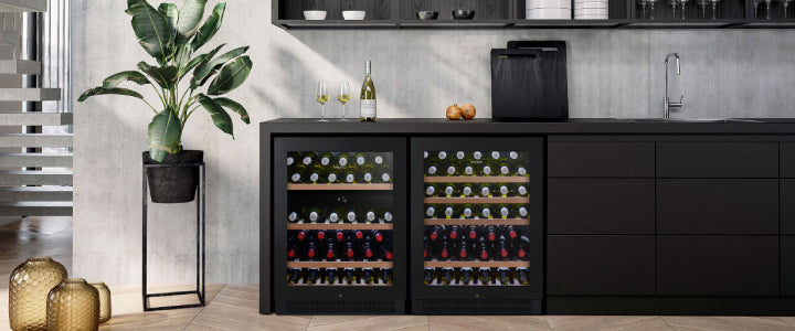 Vintec VWD050SBA-X 50 Bottle Dual Zone Cellaring & Serving with Black Borderless Glass Frame Wine Cabinet