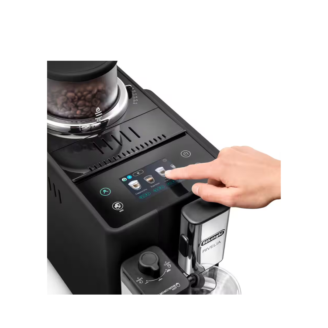 Immerse yourself in the world of coffee with Rivelia. Explore infinite bean varieties with Bean Switch System, enjoy an immersive experience with a 3.5" full-touch colour display, with rich animations and coffee routines tailored to you. Top your milk-based drinks with fine rich foam using LatteCrema Hot Technology, in a compact machine that fits your style.