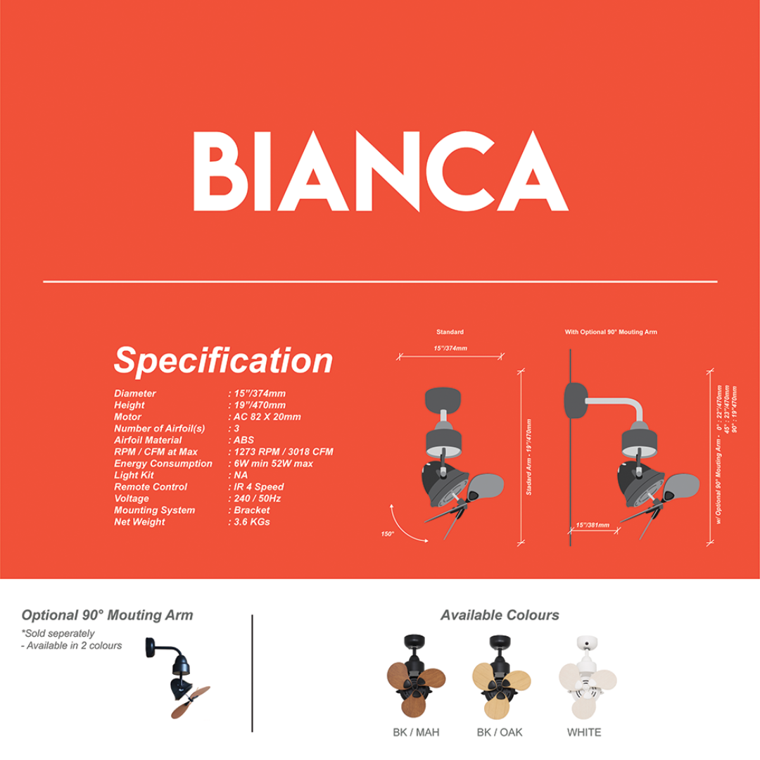 NSB BIANCA (BK/OAK) 15 INCH BRACKET MOUNTING WITH REMOTE CONTROL AC MOTOR CEILING FAN | ESH