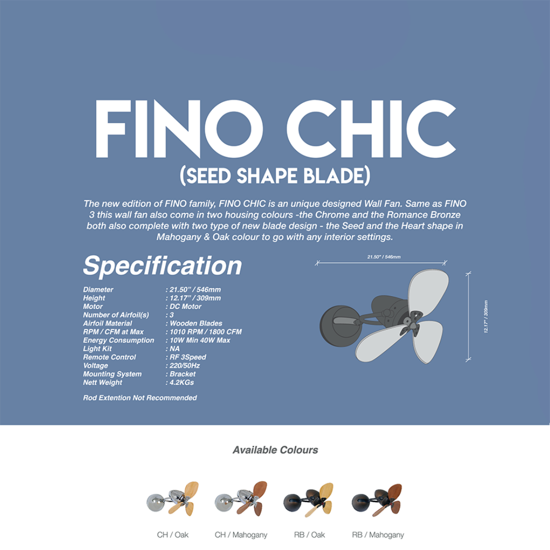 NSB FINO CHIC - SEED (CH/MAHOGANY) 16 INCH BRACKET MOUNTING WITH REMOTE CONTROL DC MOTOR WALL FAN | ESH