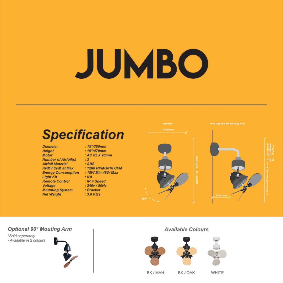 NSB JUMBO (BK/OAK) 15 INCH BRACKET MOUNTING WITH REMOTE CONTROL AC MOTOR CEILING FAN | ESH